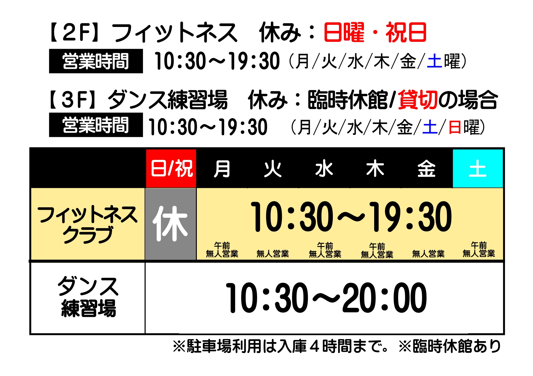 | ダンス&ジム会員 | ダンス練習場・ フィットネスがご利用可能 | 12,000円 |